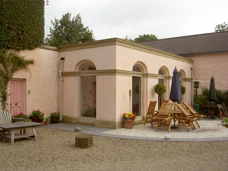 Grade B1 listed three-bay two-storey country house of late Georgian style, built in 1815 Alastair Coey Architects was appointed in 2005 by the current owners to design a contemporary Garden Room extension in a Tuscan style. The project involved the use of traditional materials such as lime render and plaster with a limecrete floorscreed incorporating underfloor heating and finished with Kilkenny limestone flooring. Phase two work carried out in 2009 involved re-rendering of the chimneys to the main house. The most recent phase of work, involved miscellaneous repairs to the main house including refurbishment of rainwater goods, external render repairs and minor internal plaster repairs completed in 2012.